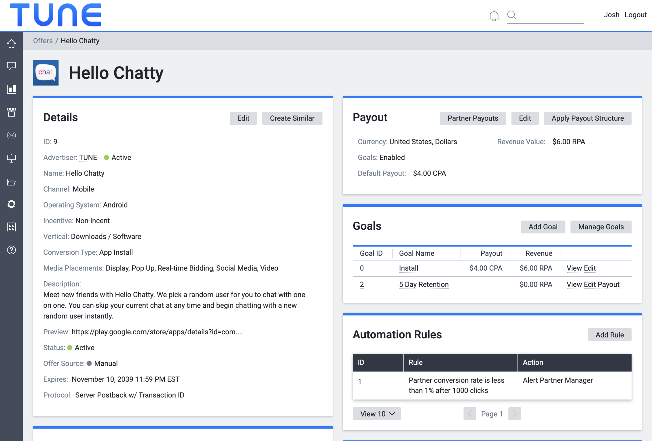 Tune is a long-standing partner marketing platform known for its flexibility and customizable tracking setup.