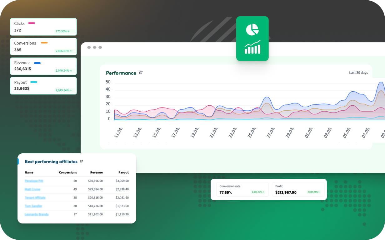 Performance networks, agencies, iGaming companies, fintech brands, SaaS marketplaces, and any business operating a multi-advertiser ecosystem can use affiliate network software.